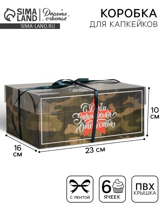 Коробка для капкейков, кондитерская упаковка, 6 ячеек «23 Февраля», 23×16×10 см