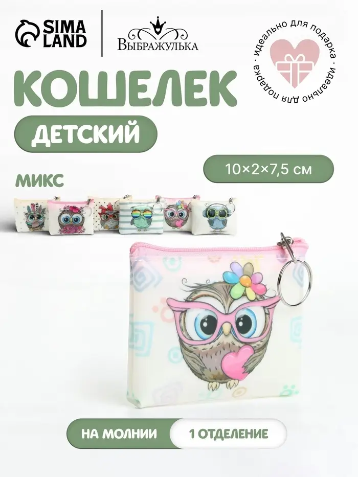 Кошелёк детский «Совята» Выбражулька, маленький, монетница, МИКС