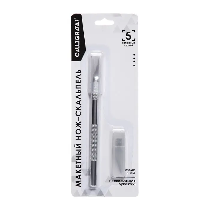 Нож канцелярский скальпель, 5 запасных лезвий, Calligrata TOP