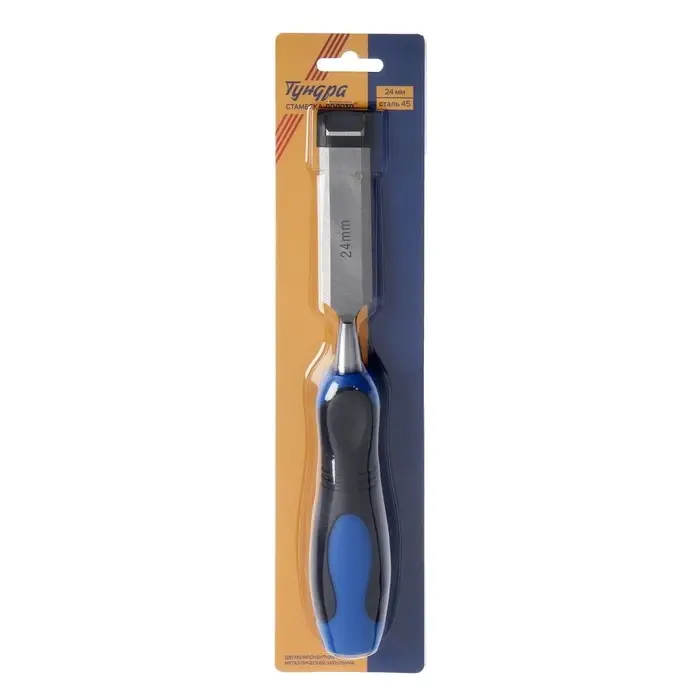 Стамеска-долото ТУНДРА, металлический затыльник, 2К рукоятка, 24 мм