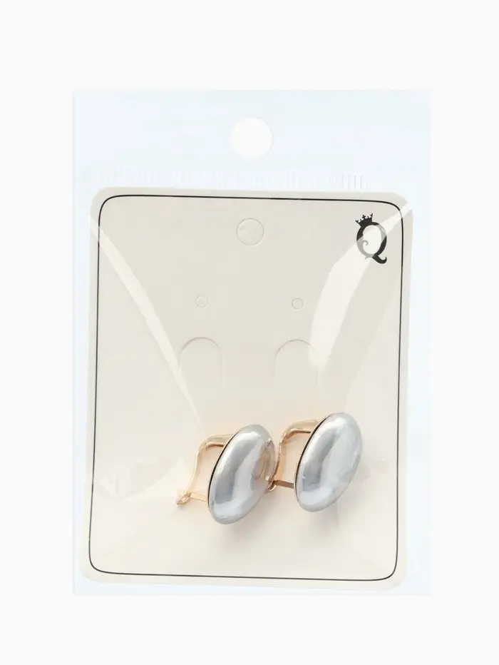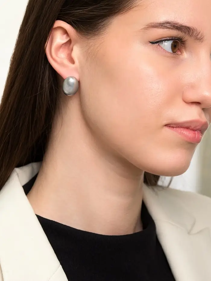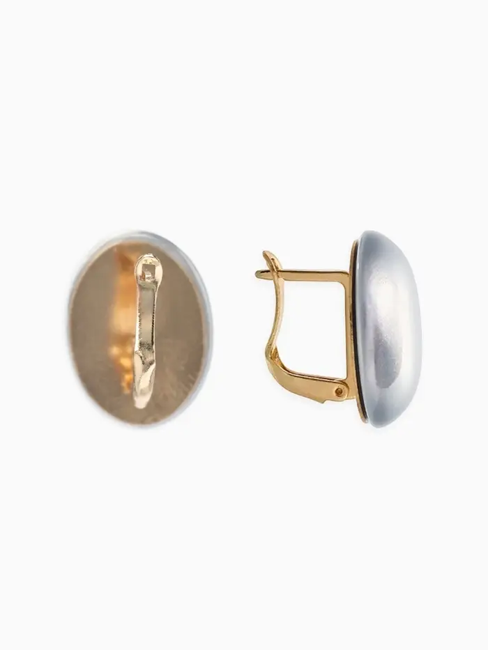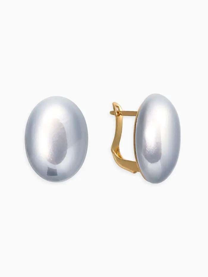 Серьги с жемчугом «Грейс», вытянутый овал, серые в золоте