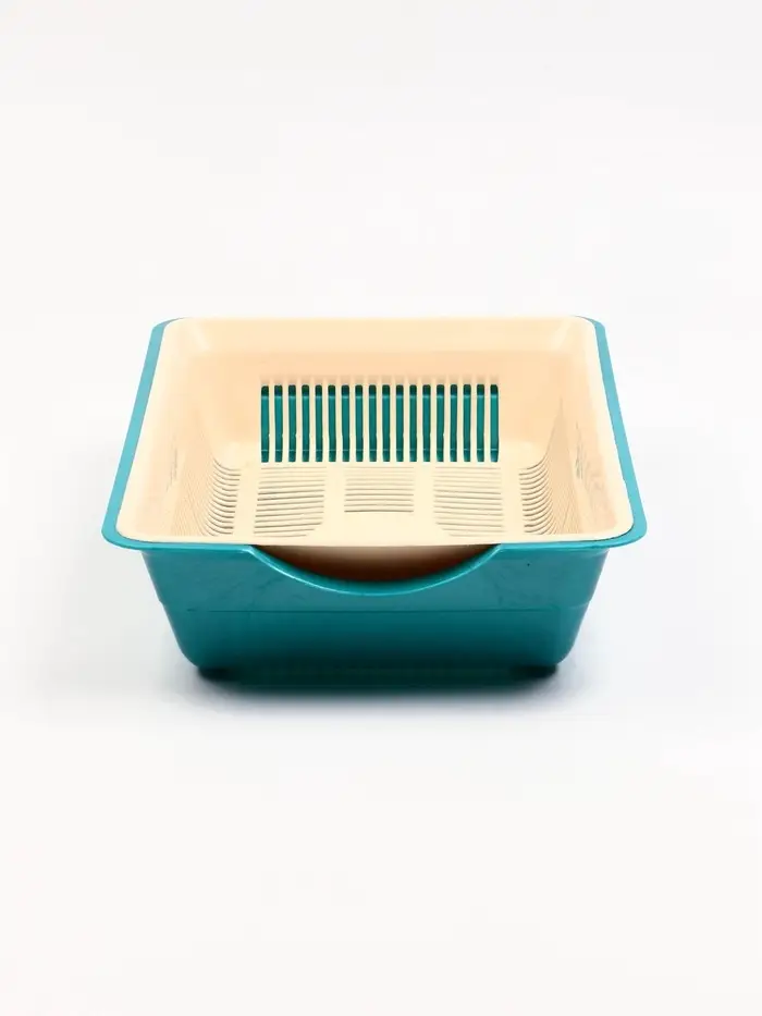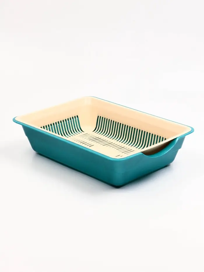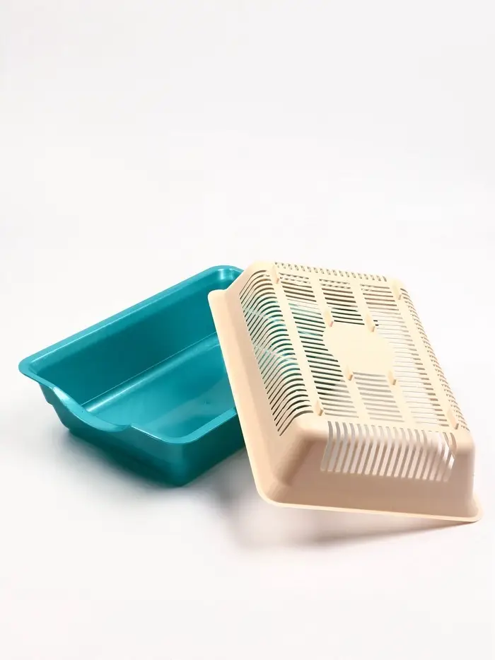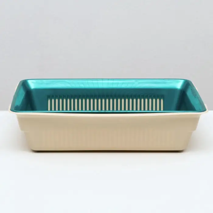Туалет для кошек, 36×25×9 см, глубокий, с сеткой, пластик, бирюзовый, бежевый