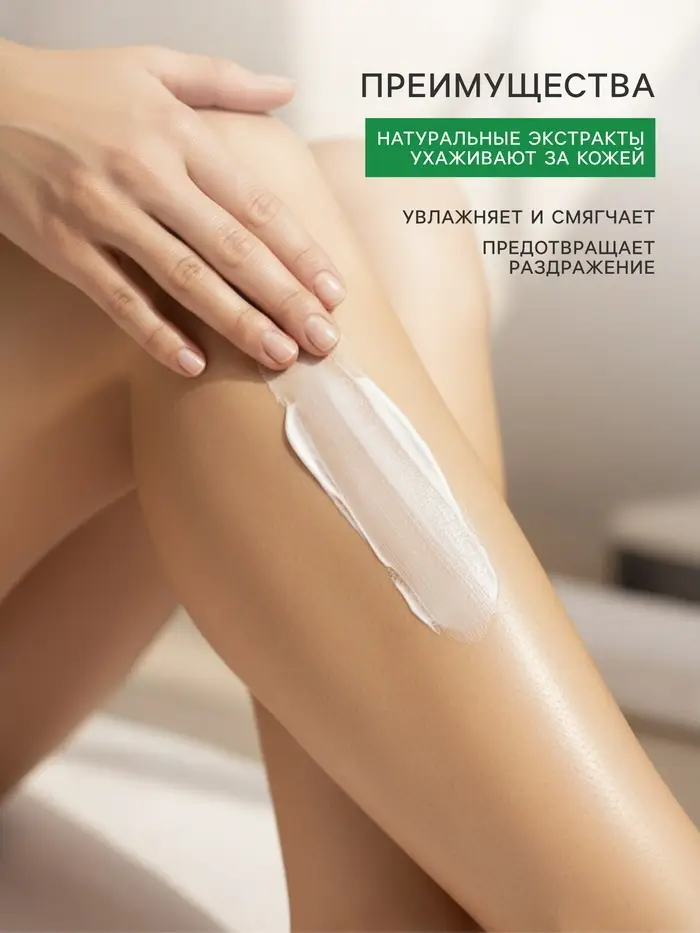 - Без содержания агрессивных химических веществ и ароматизаторов, продукт подходит для самых чувствительных участков, таких как зона бикини и подмышек.