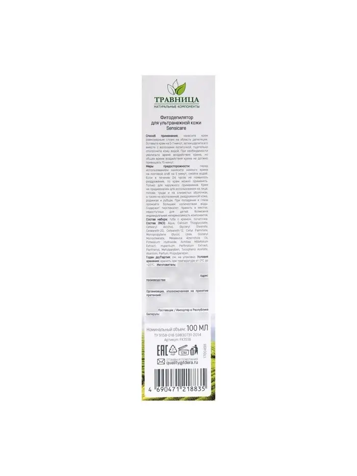 Фитодепилятор для тела «Травница» для ультранежной кожи, 100 мл
