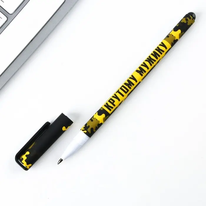 - Яркий дизайн выделяет ручку среди прочих канцелярских принадлежностей.