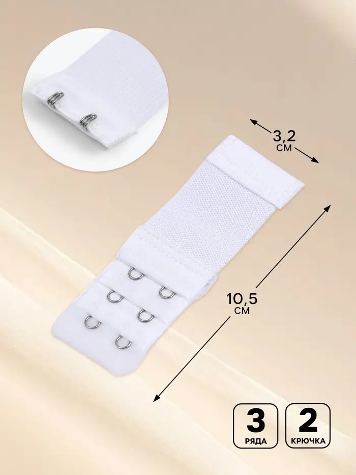 Застёжка-удлинитель для бюстгальтера TEIRA, 3 ряда 2 крючка, с резинкой, 10.5×3.2 см, набор 3 шт.