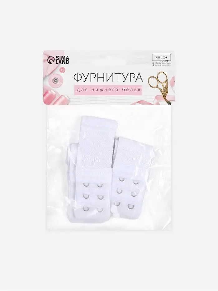 Застёжка для бюстгальтера, удлинитель, 3 ряда 2 крючка, 3.2×10.5 см, 5 шт., белая