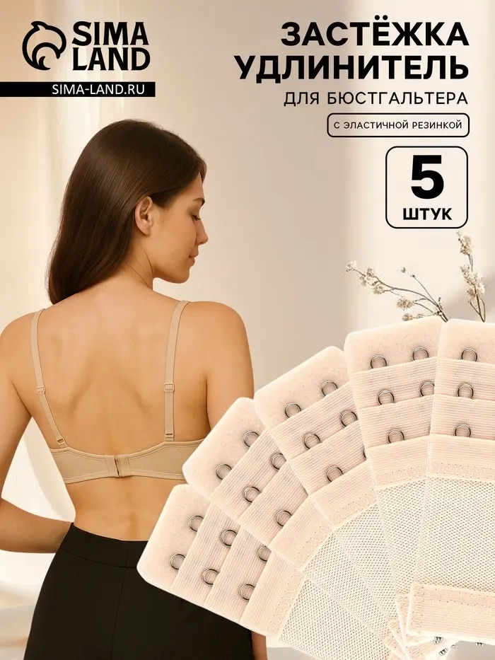 Комплект из пяти бежевых застёжек отлично сочетается с телесными оттенками белья, оставаясь практически невидимым под одеждой. Нейлоновая основа гарантирует прочность и комфорт при ежедневном использовании.
