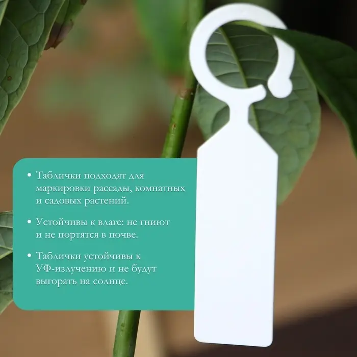 - Прочный пластик для многоразового использования: бирки сохраняют форму и цвет в течение нескольких сезонов. После сбора урожая маркеры можно очистить и подписать заново для новых посадок.