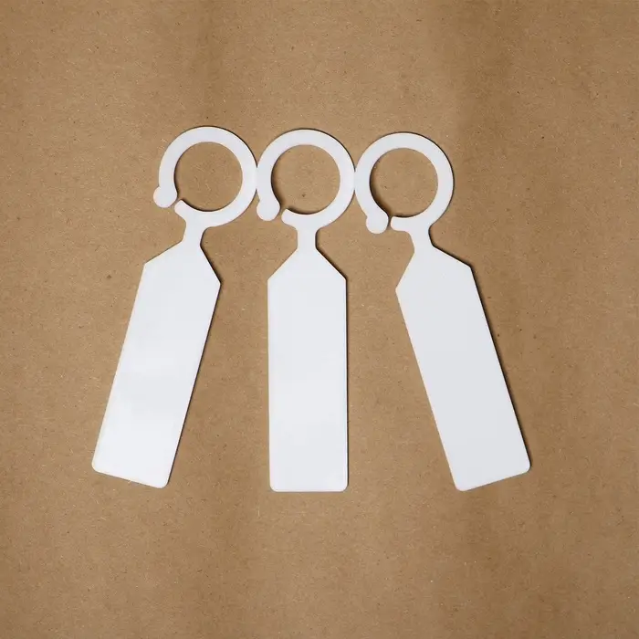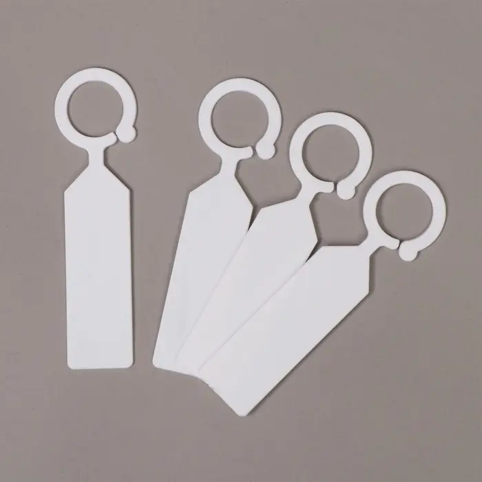 - Подвесной способ крепления: отверстие в верхней части помогает зафиксировать бирку на ветке, стебле или опоре. Такой вариант крепления не повреждает растения и подходит для вьющихся культур.