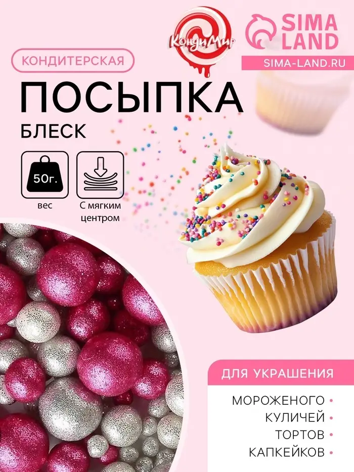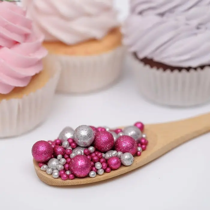 Новогодняя посыпка кондитерская с мягким центром «Блеск»: серебро, фуксия, 50 г