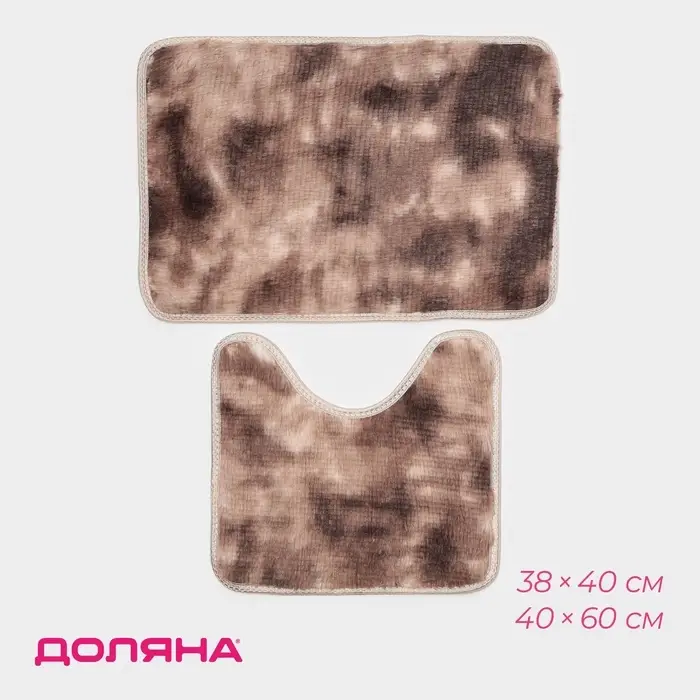 Коврики для ванной и туалета Доляна «Пушистик», 2 шт., 38×40, 40×60 см, коричневые