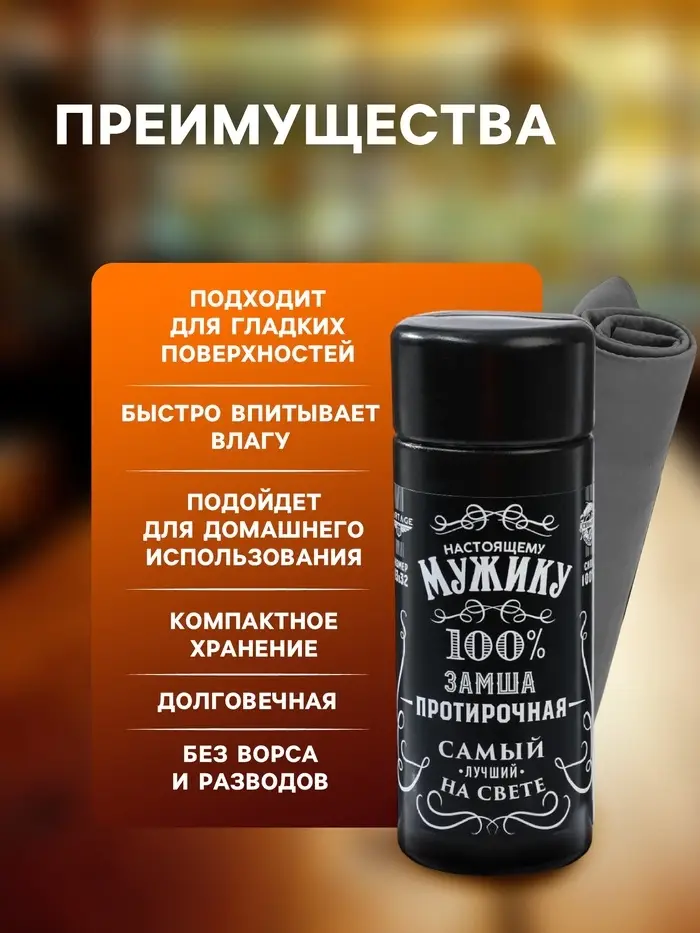Преимущества протирочной замши Cartage “Настоящий мужик”: