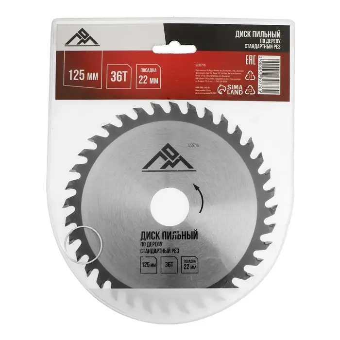 - Диаметр 125 мм, посадочное отверстие 22 мм: Компактный диск для малых циркулярных пил и торцовок. Переходные кольца в комплекте — для установки на разные валы.