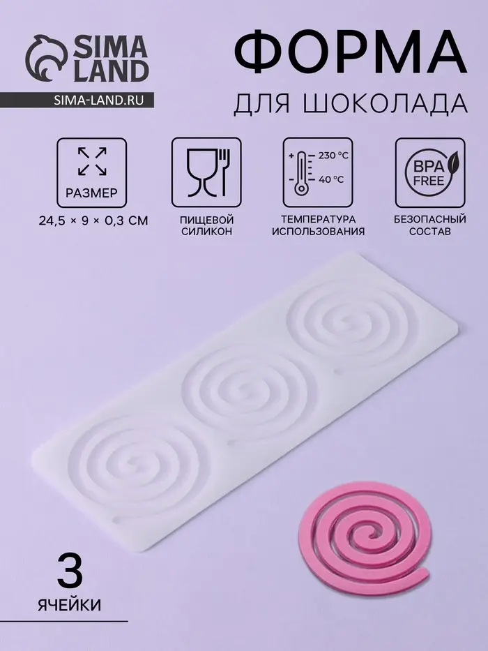 Эта форма особенно актуальна, когда важна не только вкусовая, но и визуальная составляющая десерта. Благодаря эластичности силикона плитки легко извлекаются, сохраняя чёткие линии спирали. Идеальный выбор для тех, кто ценит декоративность, минимализм и хочет сделать сладости, которые привлекают внимание — без лишнего, но с характером.