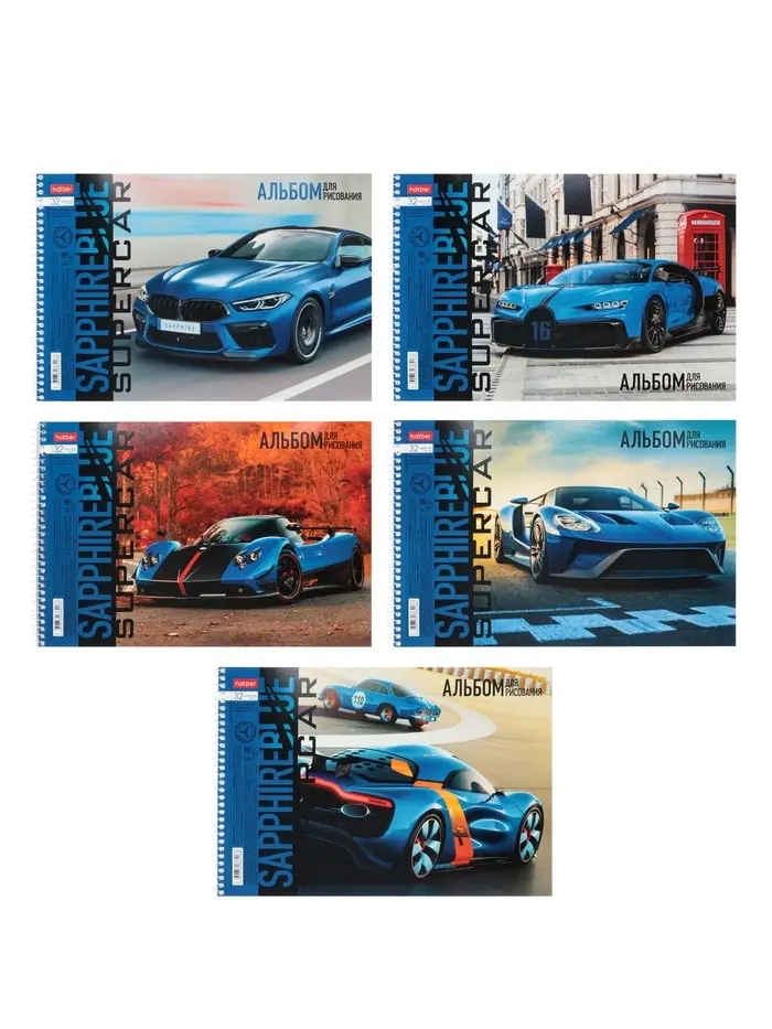 Альбом для рисования BLUEsupercar А4, 32 листа, на гребне, плотность листов 100 г/м², обложка из мелованного картона, МИКС