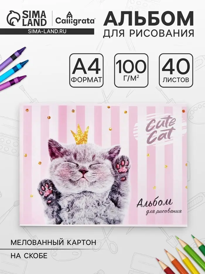 Альбом для рисования Calligrata, А4, 40 листов, на скрепке, обложка мелованный картон, блок 100 г/м²