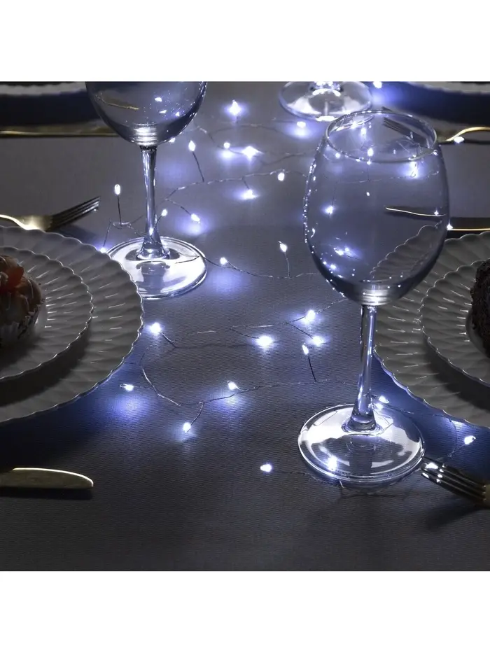 Гирлянда «Мишура» 2 м, роса, IP20, серебристая нить, 50 LED, от батареек CR2032×2, свечение белое