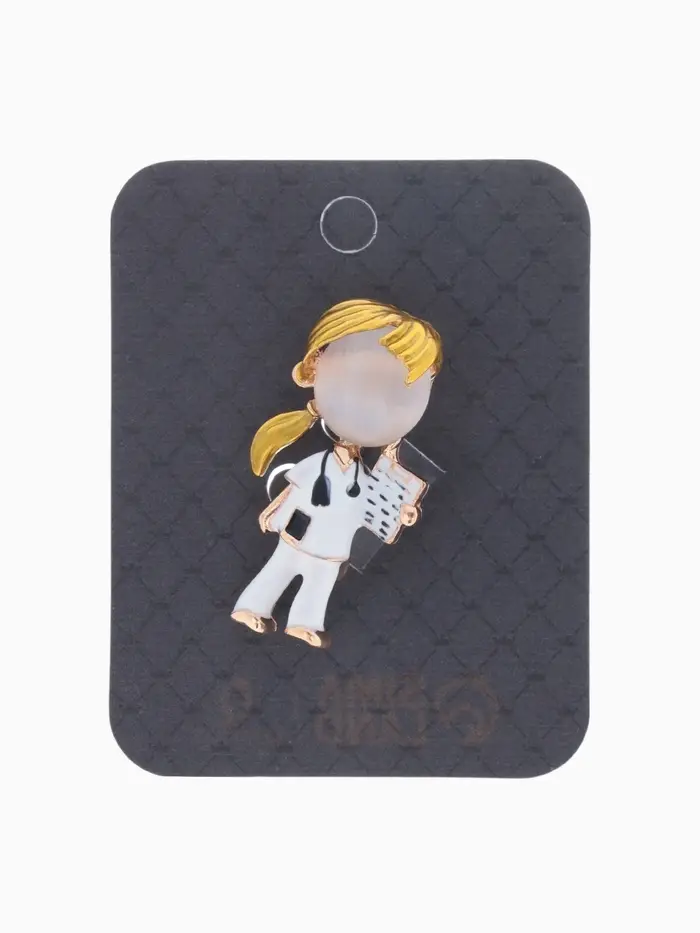 Вдохновляющая брошь в виде девочки-врача — это не просто украшение, а символ заботы и преданности профессии. С длиной всего 4 см, она станет ярким акцентом в вашем образе, подчеркивая вашу индивидуальность и профессионализм. Выполненная из металла с золотым покрытием и украшенная искусственным камнем и эмалью, эта брошь идеально подойдет для медработников, которые хотят выразить свою гордость за выбранную профессию.