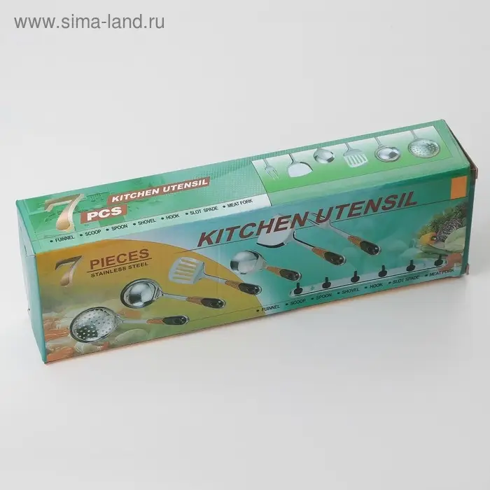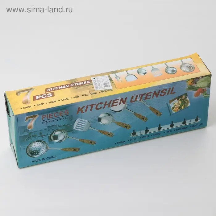 Набор кухонных принадлежностей Доляна «Лиам», 7 предметов, 33×12.5×12.5 см, бирюзовый