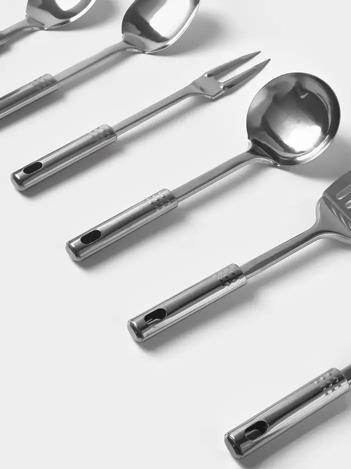 Набор кухонных принадлежностей «Стандарт» — это стильный и функциональный аксессуар для вашей кухни. Все изделия изготовлены из высококачественной нержавеющей стали, устойчивой к коррозии и сохраняющей свой первозданный вид даже после длительного использования. Благодаря зеркальной полировке и простому дизайну, этот набор гармонично впишется в любой интерьер кухни. Отверстия для крепления позволяют удобно разместить аксессуары на стене, экономя пространство и обеспечивая быстрый доступ к необходимым предметам. Кухонные принадлежности из этого набора станут незаменимыми помощниками в приготовлении пищи, облегчая процесс готовки и делая его более приятным и удобным.