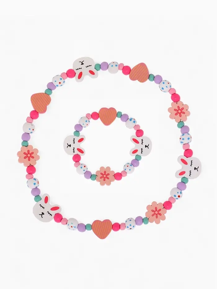 Набор детских украшений Выбражулька «Зайчик», 2 предмета: бусы, браслет d=6 см разноцветный