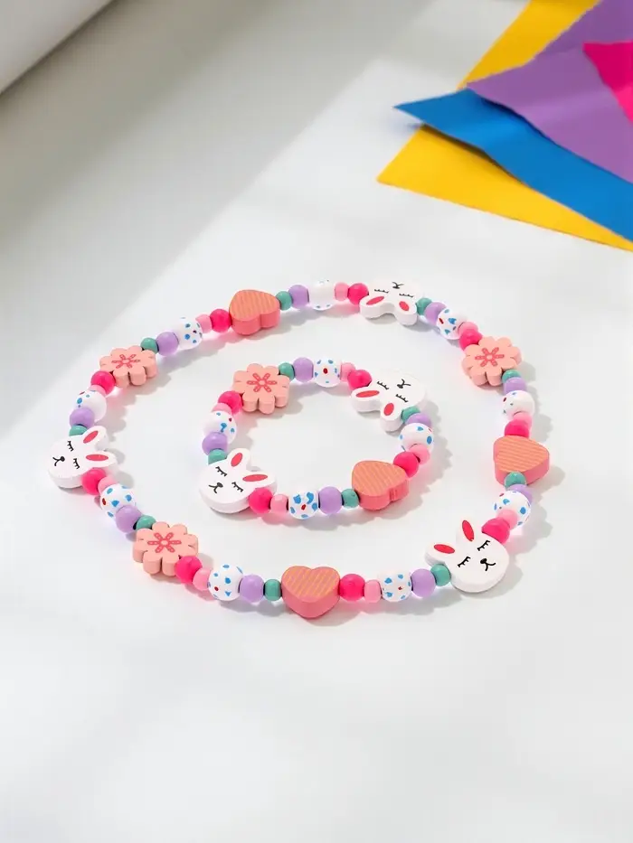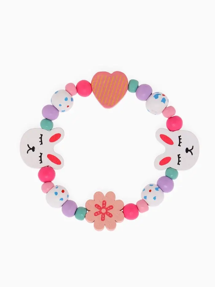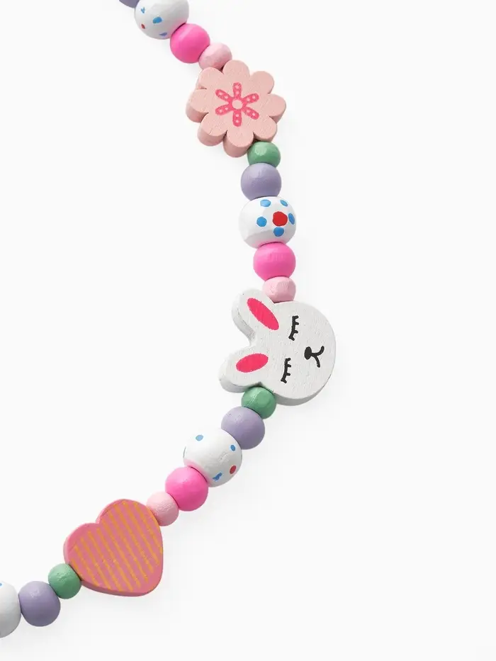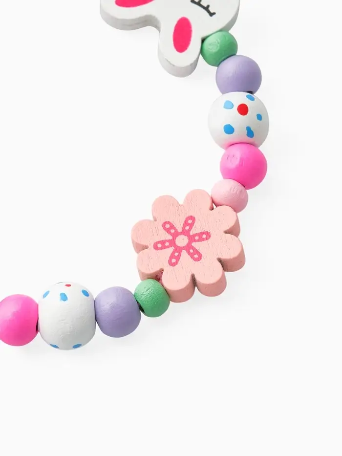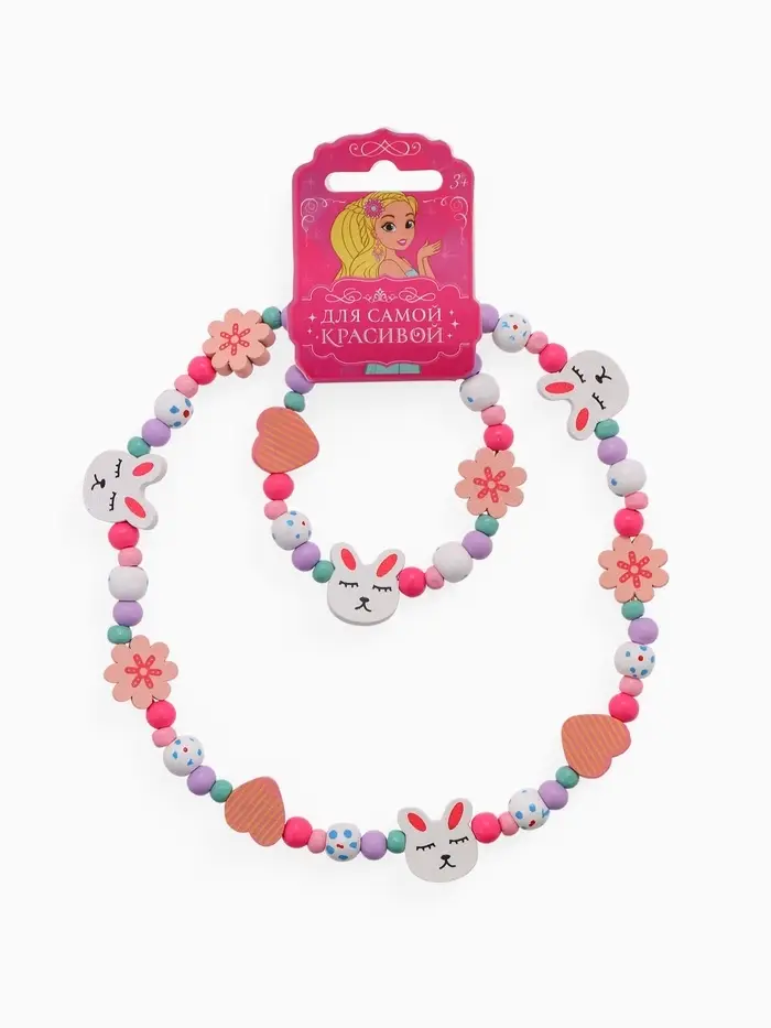 - Яркий дизайн: разноцветные бусы и браслет с изображением зайчика привлекают внимание и радуют глаз.