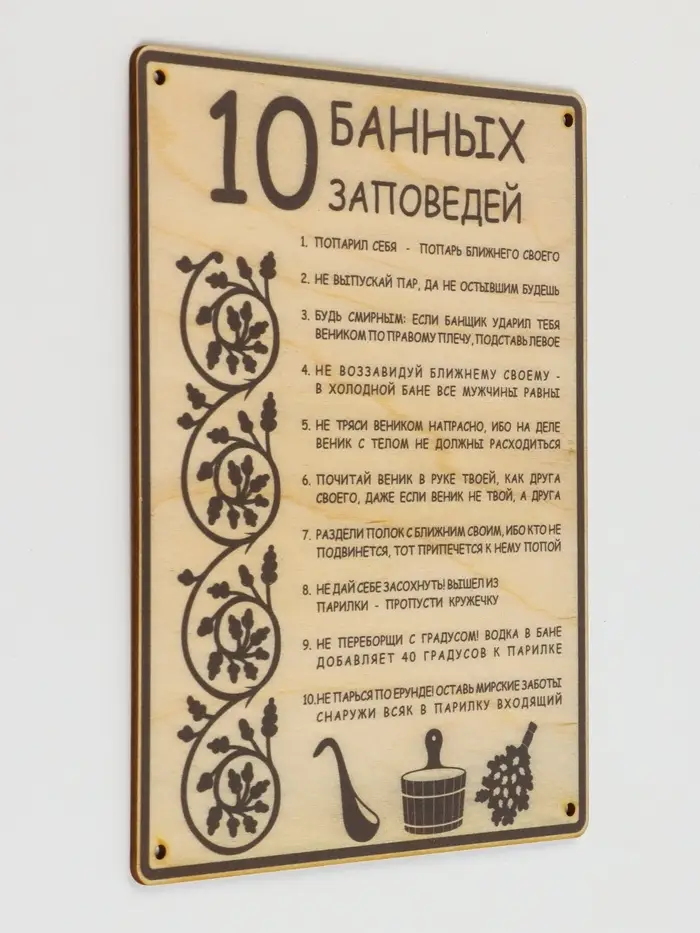 Табличка для бани и сауны «10 банных заповедей», 24×18.5 см, дерево