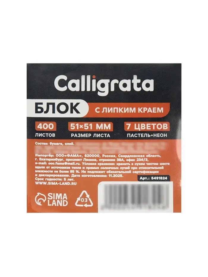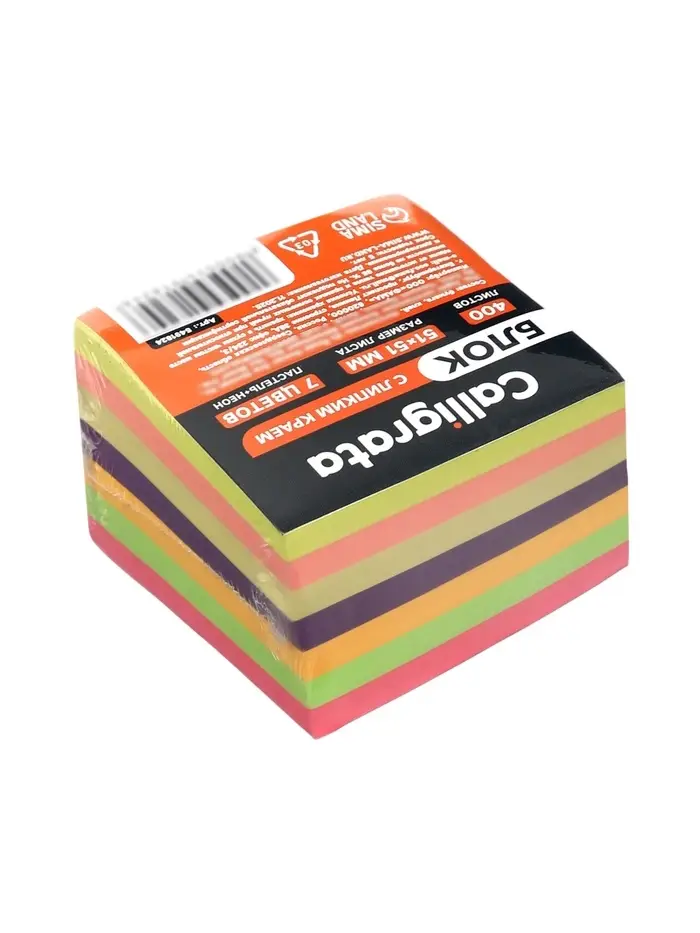 Блок с липким краем, 51×51 мм, 400 листов, пастель/флуоресцентный, 7 цветов