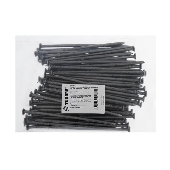 Гвозди ТУНДРА, строительные, ГОСТ 4028-63, без покрытия, 4×120 мм, фасовка 1 кг