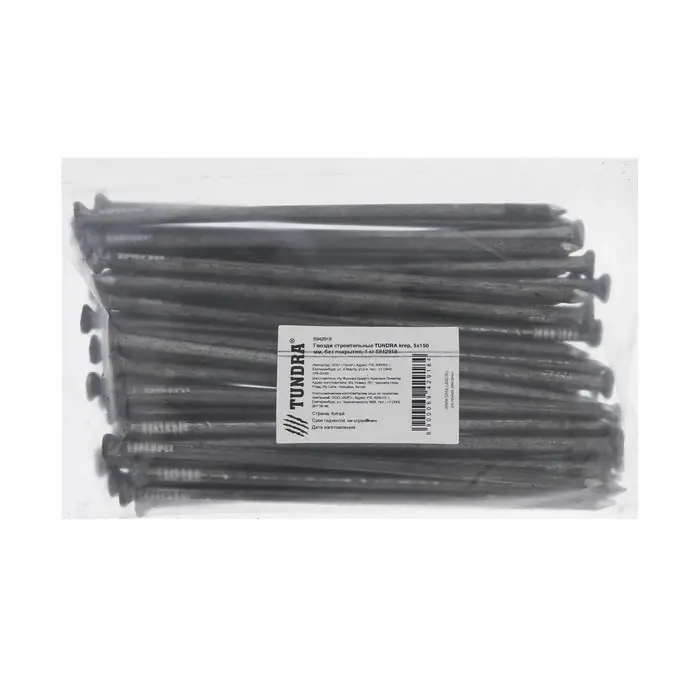Гвозди ТУНДРА, строительные, ГОСТ 4028-63, без покрытия, 5×150 мм, фасовка 1 кг