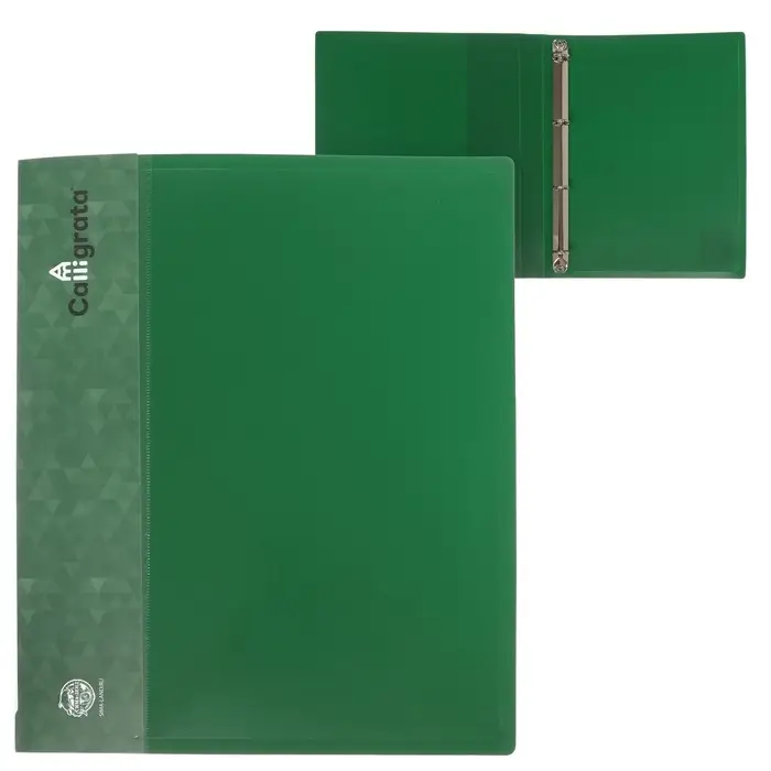 Папка на 4 кольцах А4, Calligrata, 25 мм, 700 мкм, внутренний карман, карман на корешок, зелёная