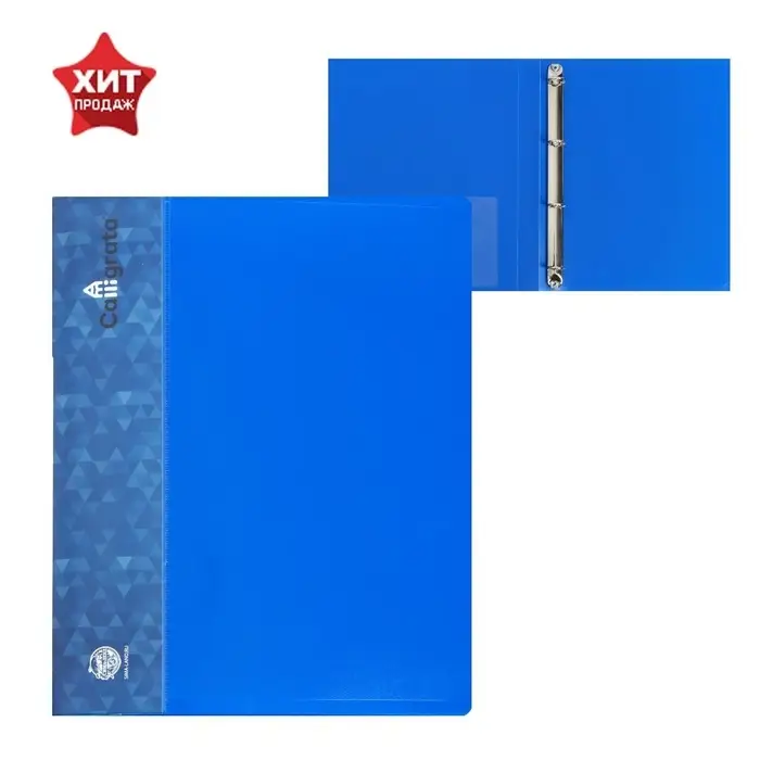 Папка на 2 кольцах А4, Calligrata, 25 мм, 700 мкм, внутренний и торцевой карман, синяя