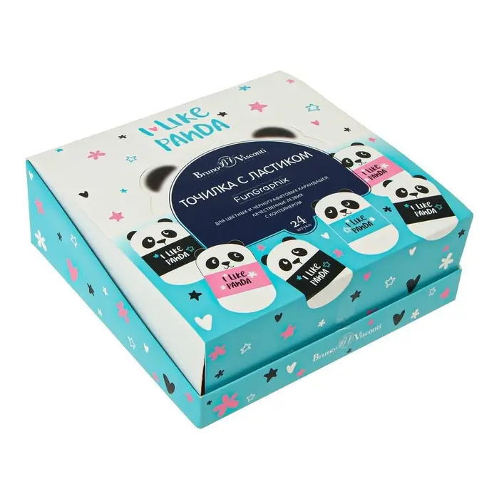 - Весёлый и добрый рисунок с пандой делает точилку личным предметом, который хочется использовать.