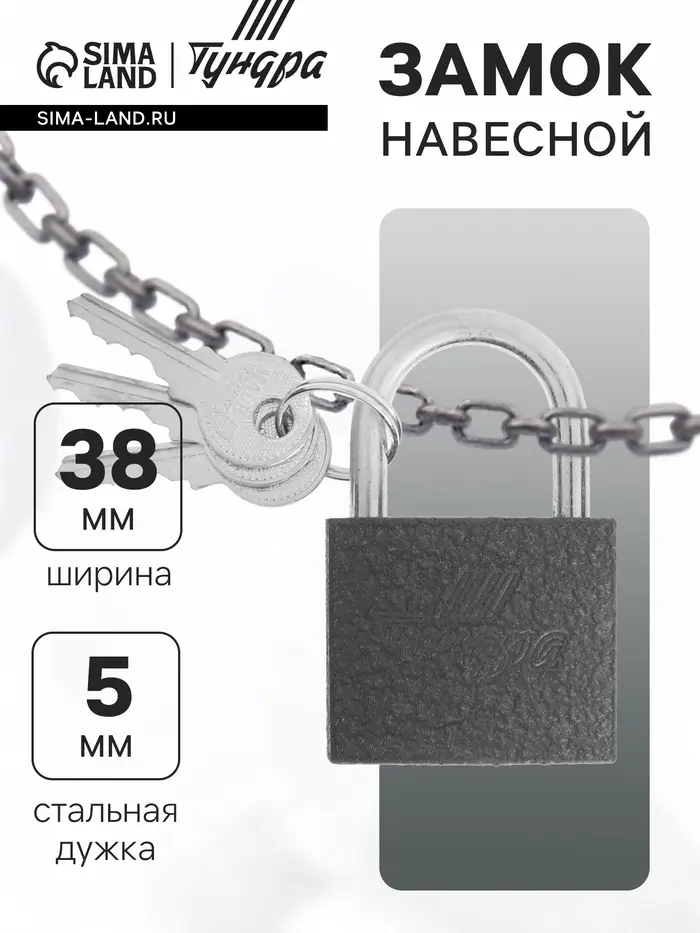 Замок навесной ТУНДРА 38 мм, 3 ключа, подвес