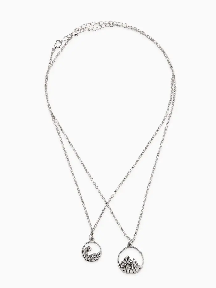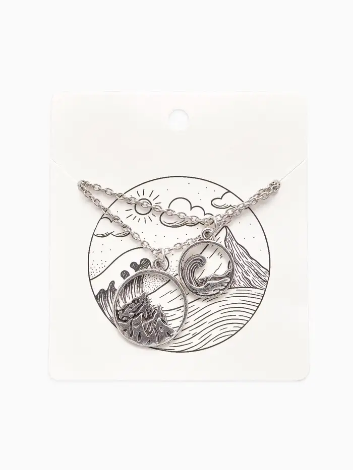 Кулоны парные «Горы и море», 45 см, цвет чернёное серебро