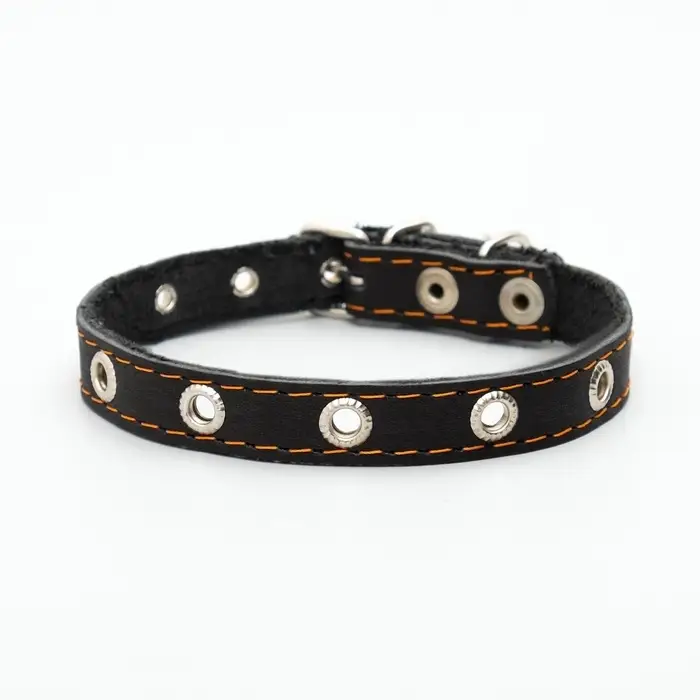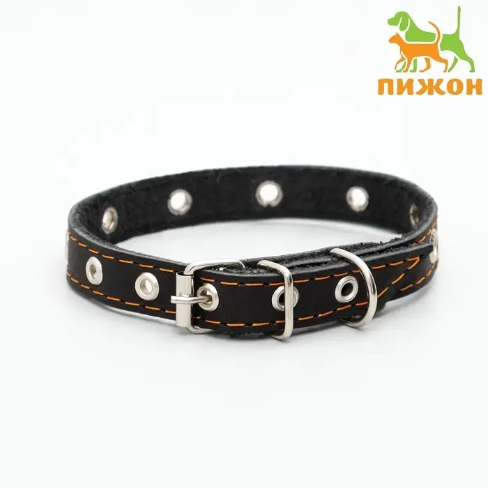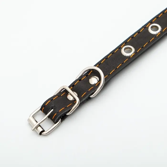 Ошейник кожаный однослойный с рифлеными люверсами, безразмерный, 40×1.5 см, ОШ 27-35 см, чёрный