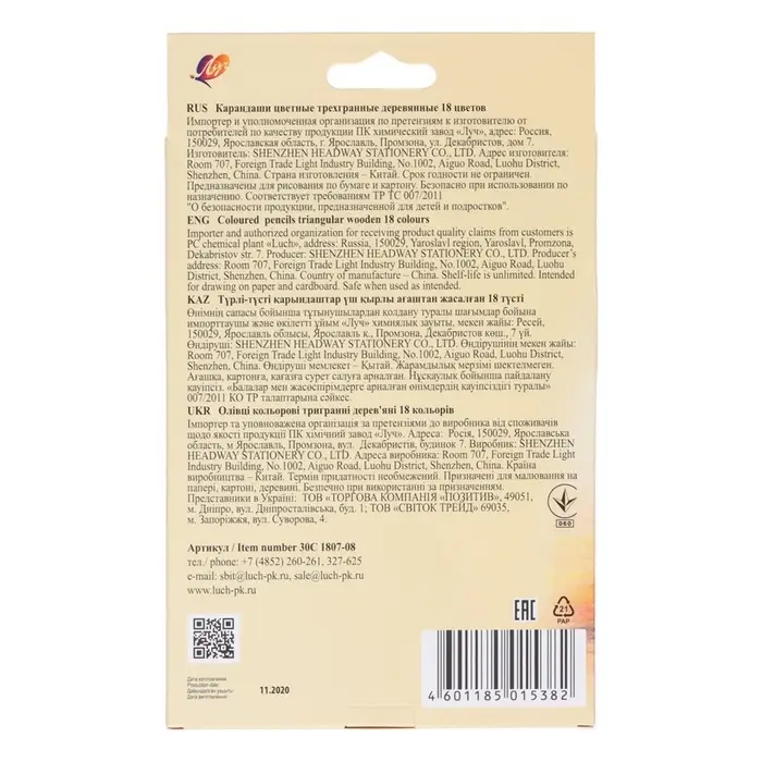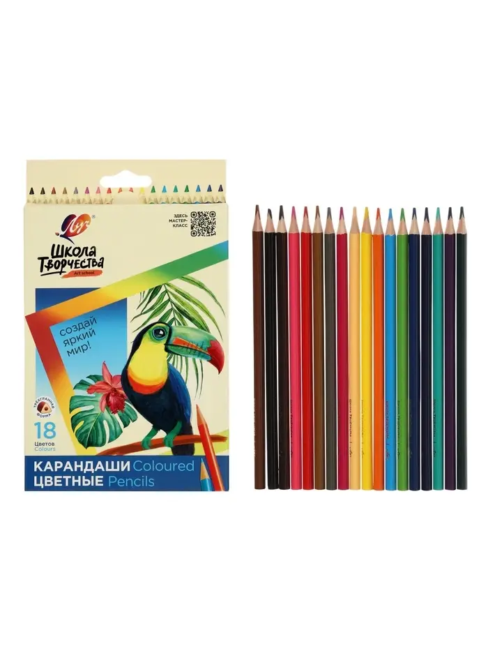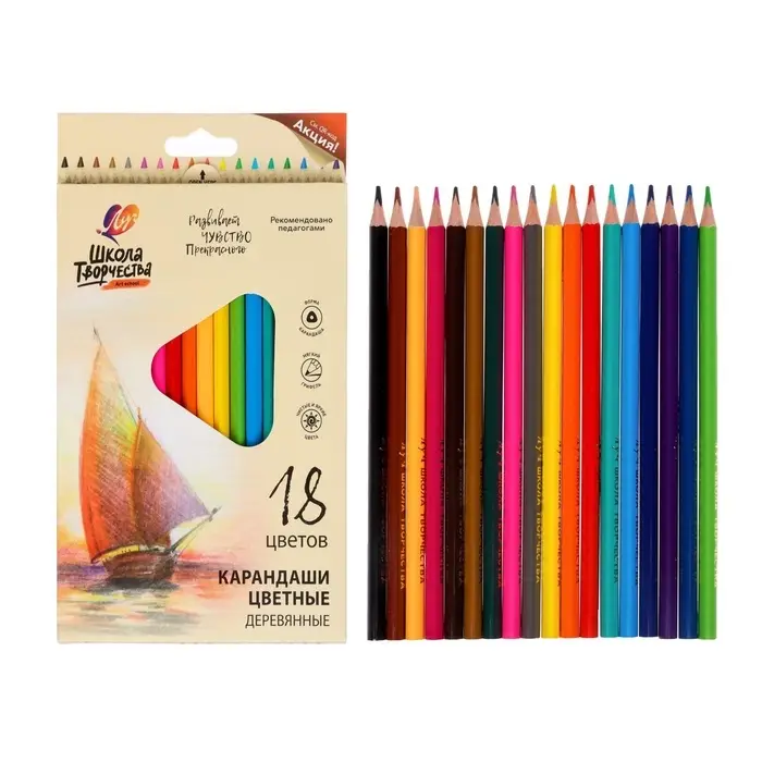 Карандаши цветные 18 цветов «Школа Творчества», трёхгранные