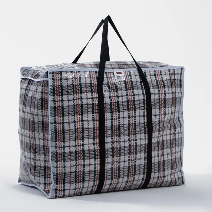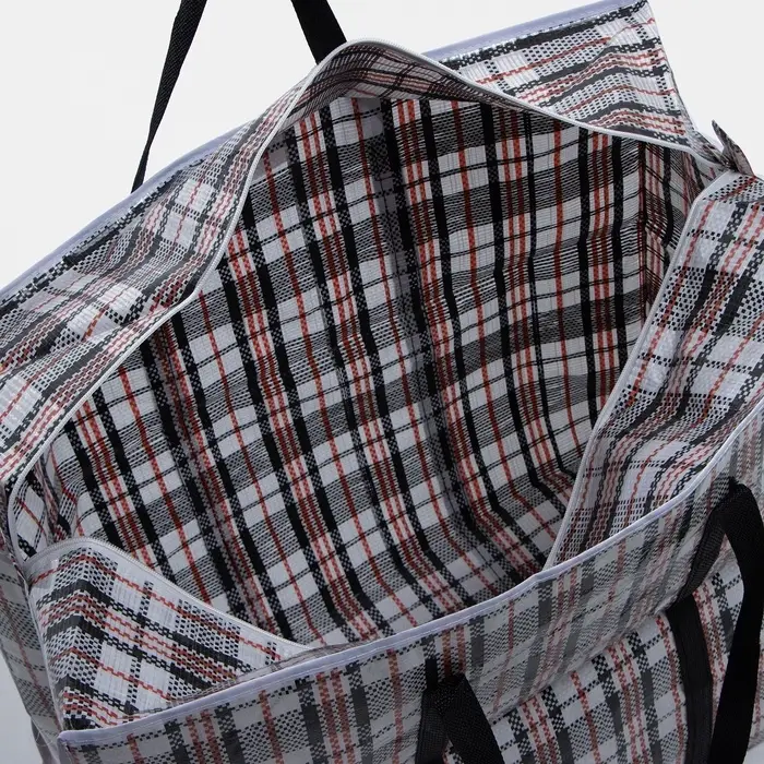 Большой хозяйственный баул на молнии объёмом 105 литров — решение для хранения и транспортировки вещей. Полипропиленовый материал выдерживает до 20 кг, а чёрно-белая клетка маскирует возможные загрязнения. Подойдёт для дачи, переезда или сезонного хранения одежды.