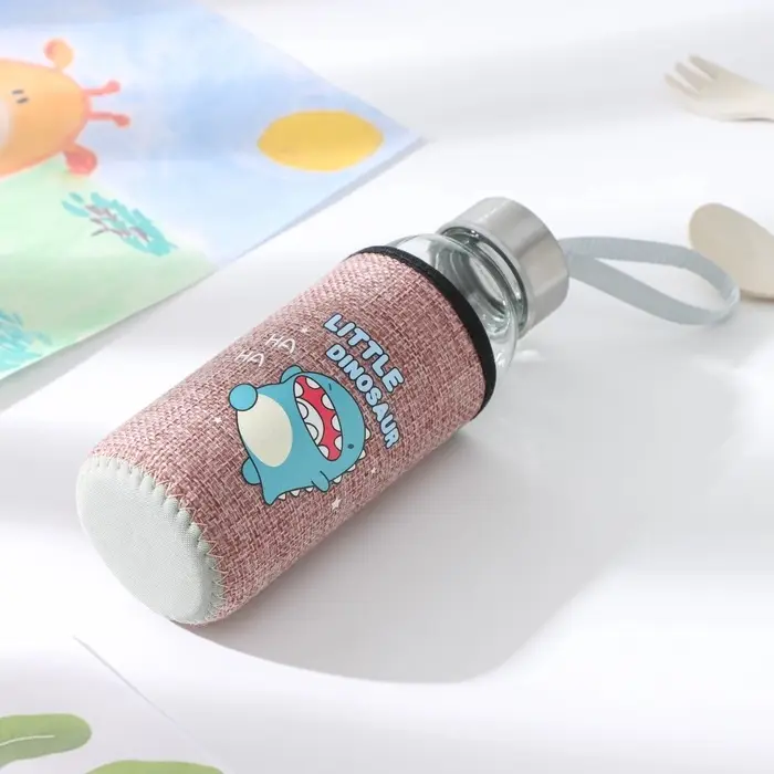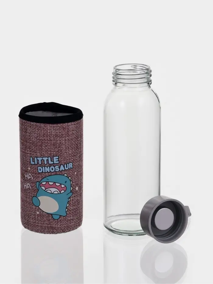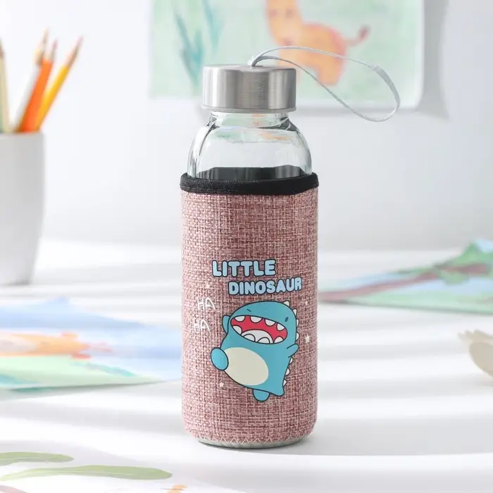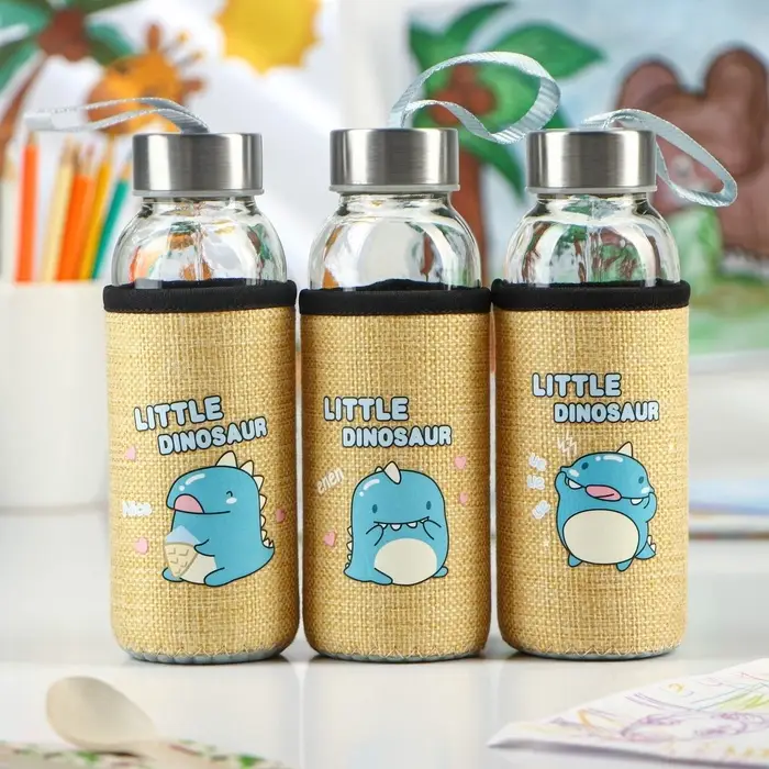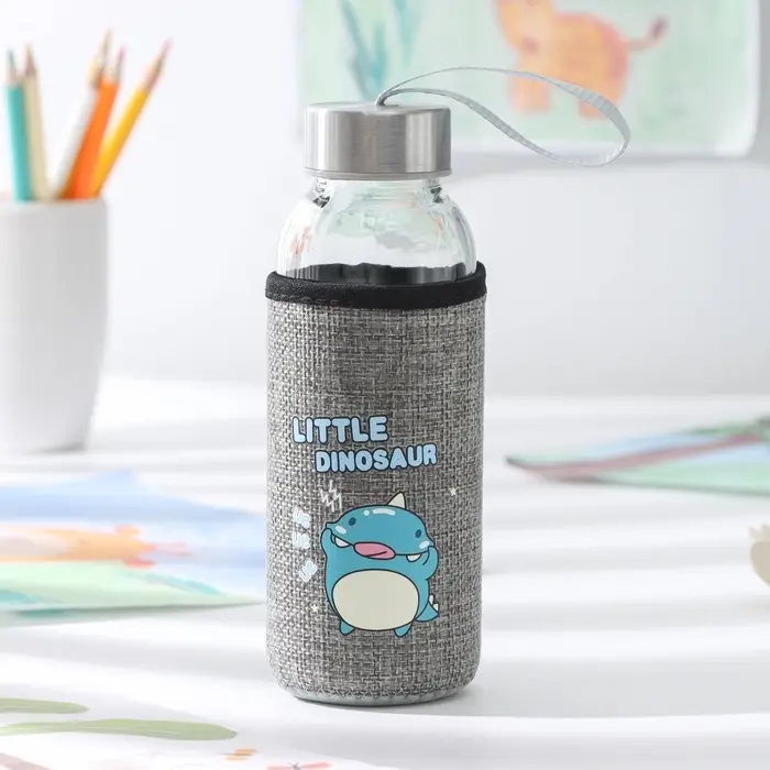 Бутылка для воды в чехле «Дино», 300 мл, h=17 см, стекло, рисунок МИКС