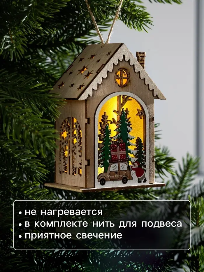 Подвеска световая «Дом Снегурочки», 8×4×8.5 см, 1 LED, от батареек AG10×3, свечение тёплое белое