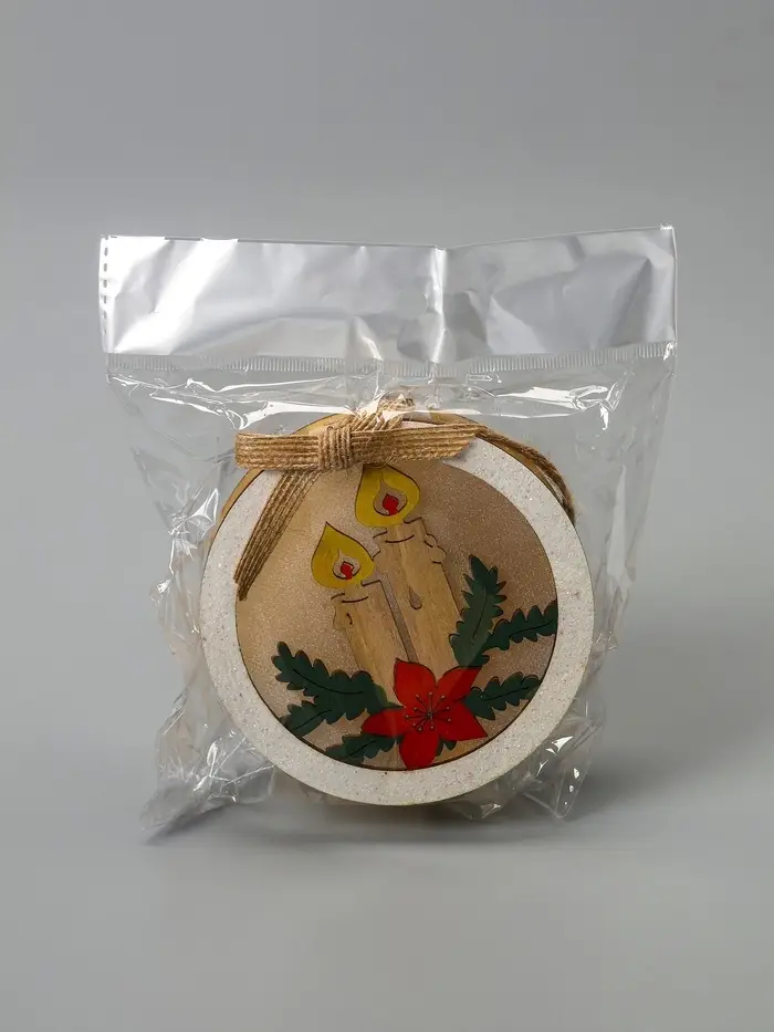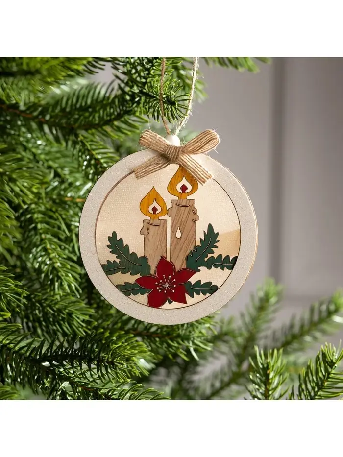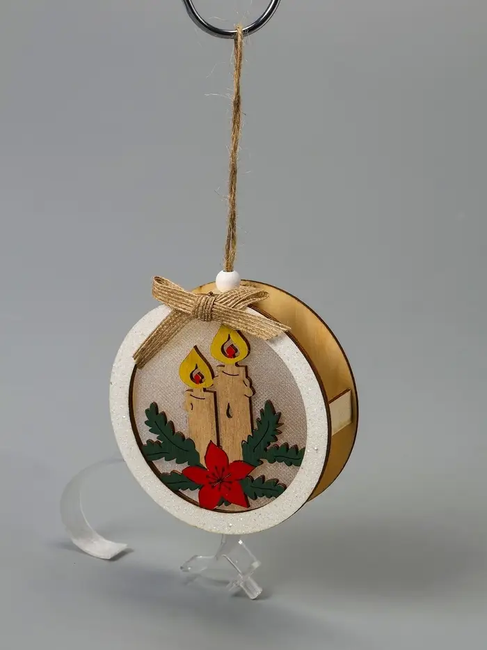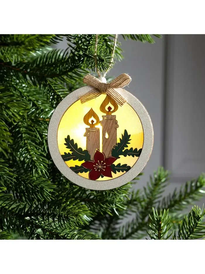 Ёлочная игрушка «Шар со свечками», 10×10×3 см, от батареек, свечение тёплое белое