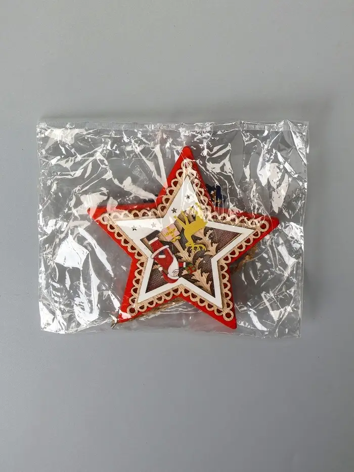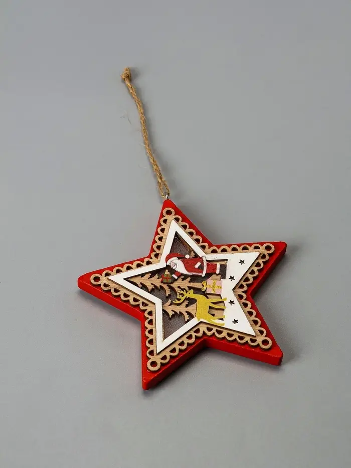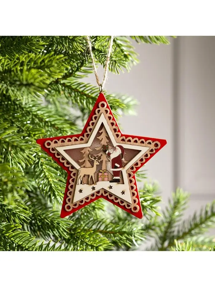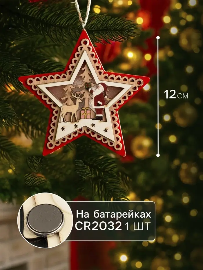 Ёлочная игрушка «Красная звезда с Дедом Морозом», 12×12×1.5 см, от батареек, свечение тёплое белое