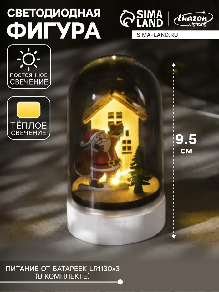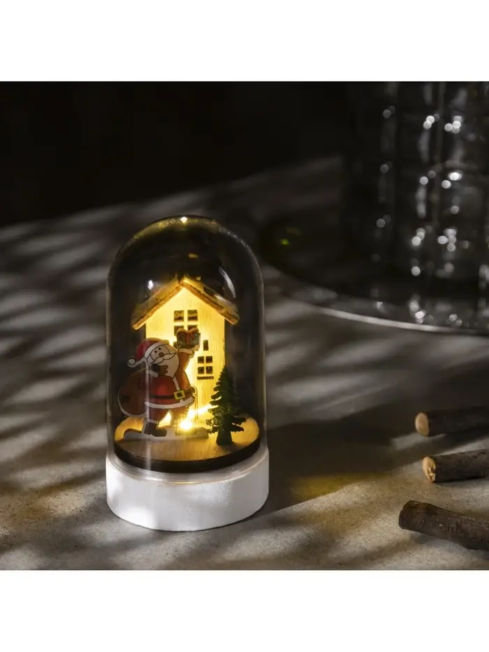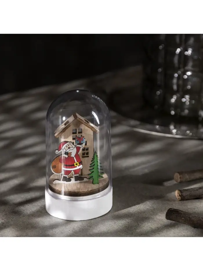 Светодиодная фигура под куполом «Дед Мороз с мешком» 6×9.5×6 см, дерево, от батареек LR1130×3, свечение тёплое белое