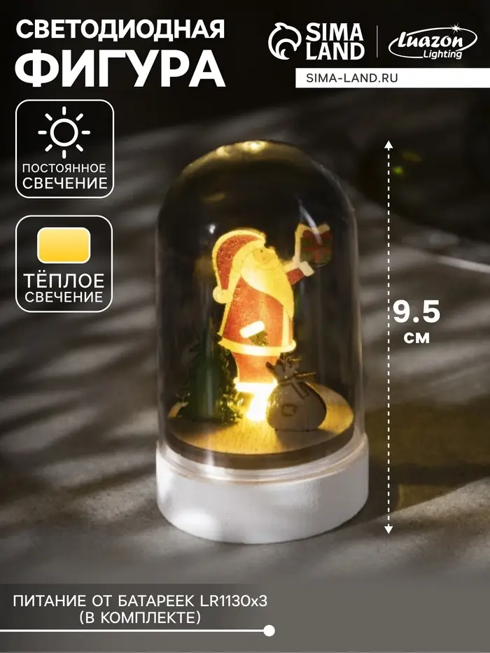 Светодиодная фигура под куполом «Дед Мороз» 6×9.5×6 см, дерево, батарейки LR1130×3 (нет в комплекте), свечение тёплое белое