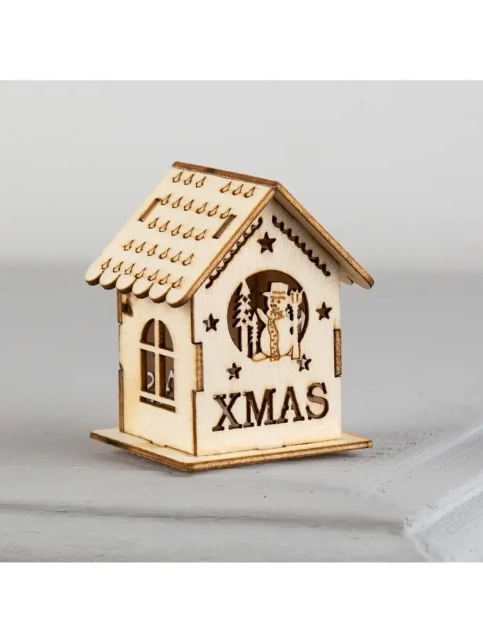 Ёлочная игрушка «Домик со снеговиком», 6×4.5×4.5 см, от батареек, свечение тёплое белое
