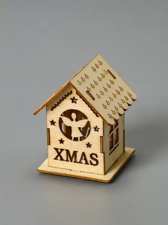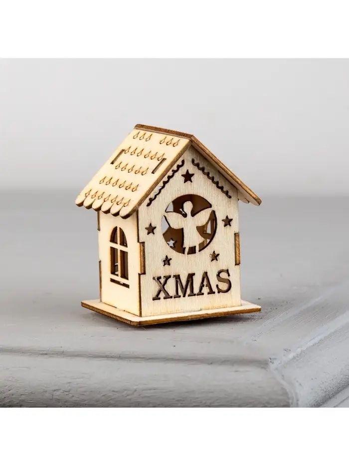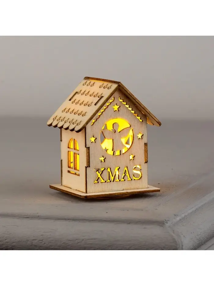 Ёлочная игрушка «Домик с ангелом», 6×4.5×4.5 см, от батареек, свечение тёплое белое