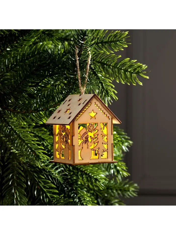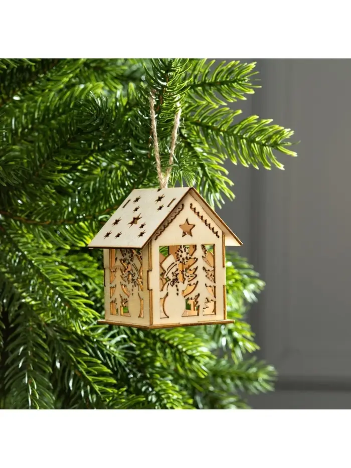 Подвеска световая «Дом Снегурочки», 8×4×8.5 см, 1 LED, от батареек AG10×3, свечение тёплое белое