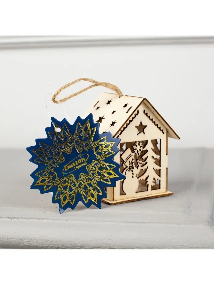 Ёлочная игрушка «Домик со снеговиком», 7.5×6.5×6 см, от батареек, свечение тёплое белое