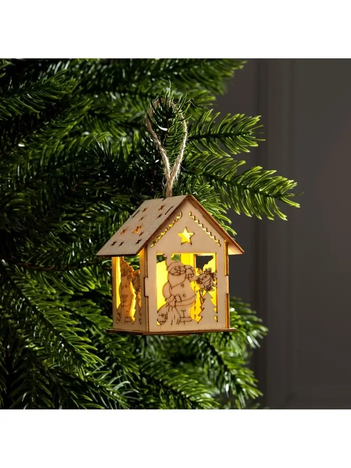 Подвеска световая «Дом Снегурочки», 8×4×8.5 см, 1 LED, от батареек AG10×3, свечение тёплое белое